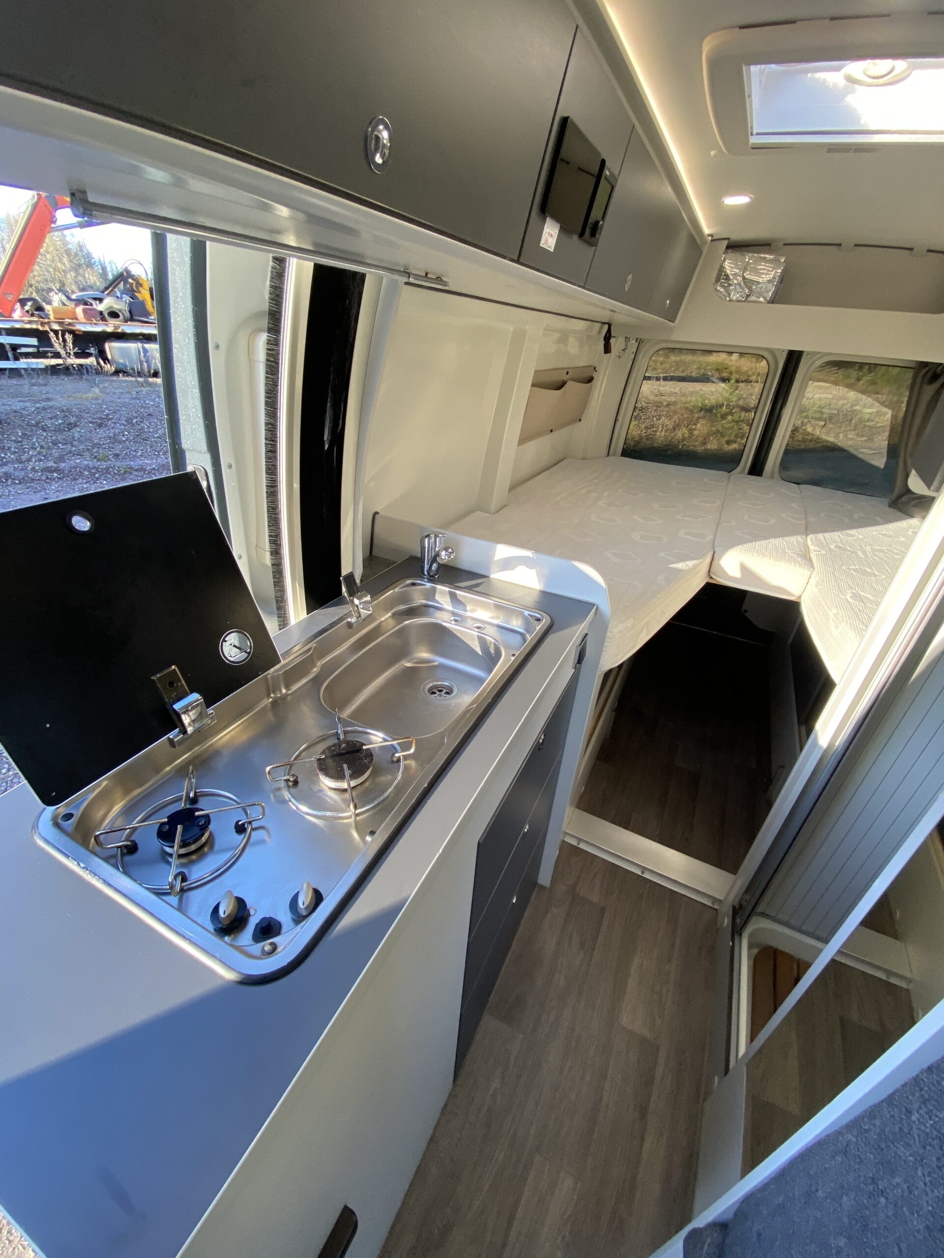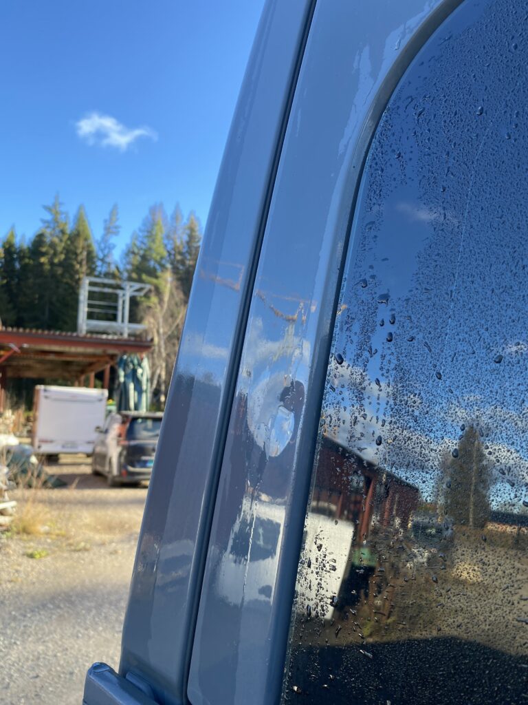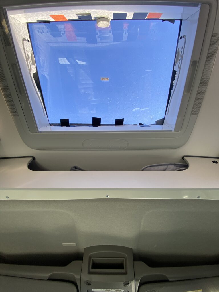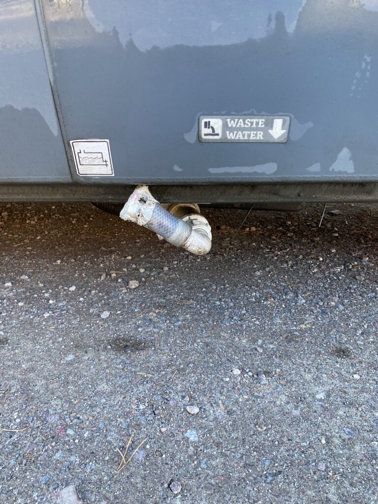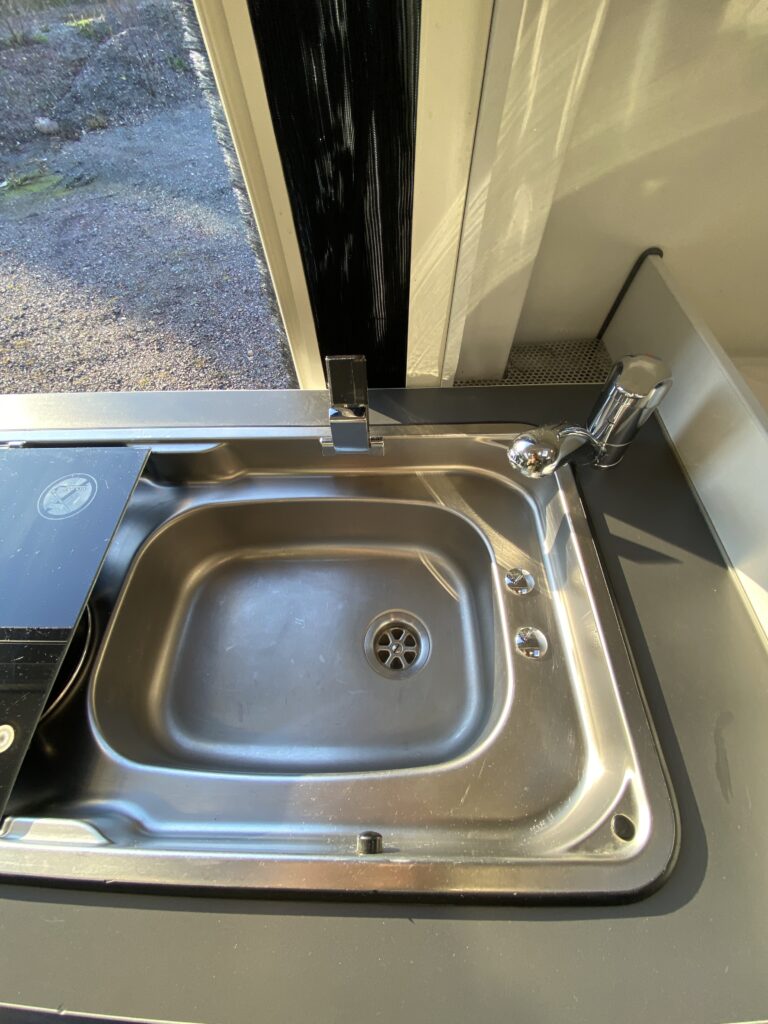 Damages: Roof window handle missing, sink glass top broken, bathroom sink is leaking, grey water tank valve must be replaced
