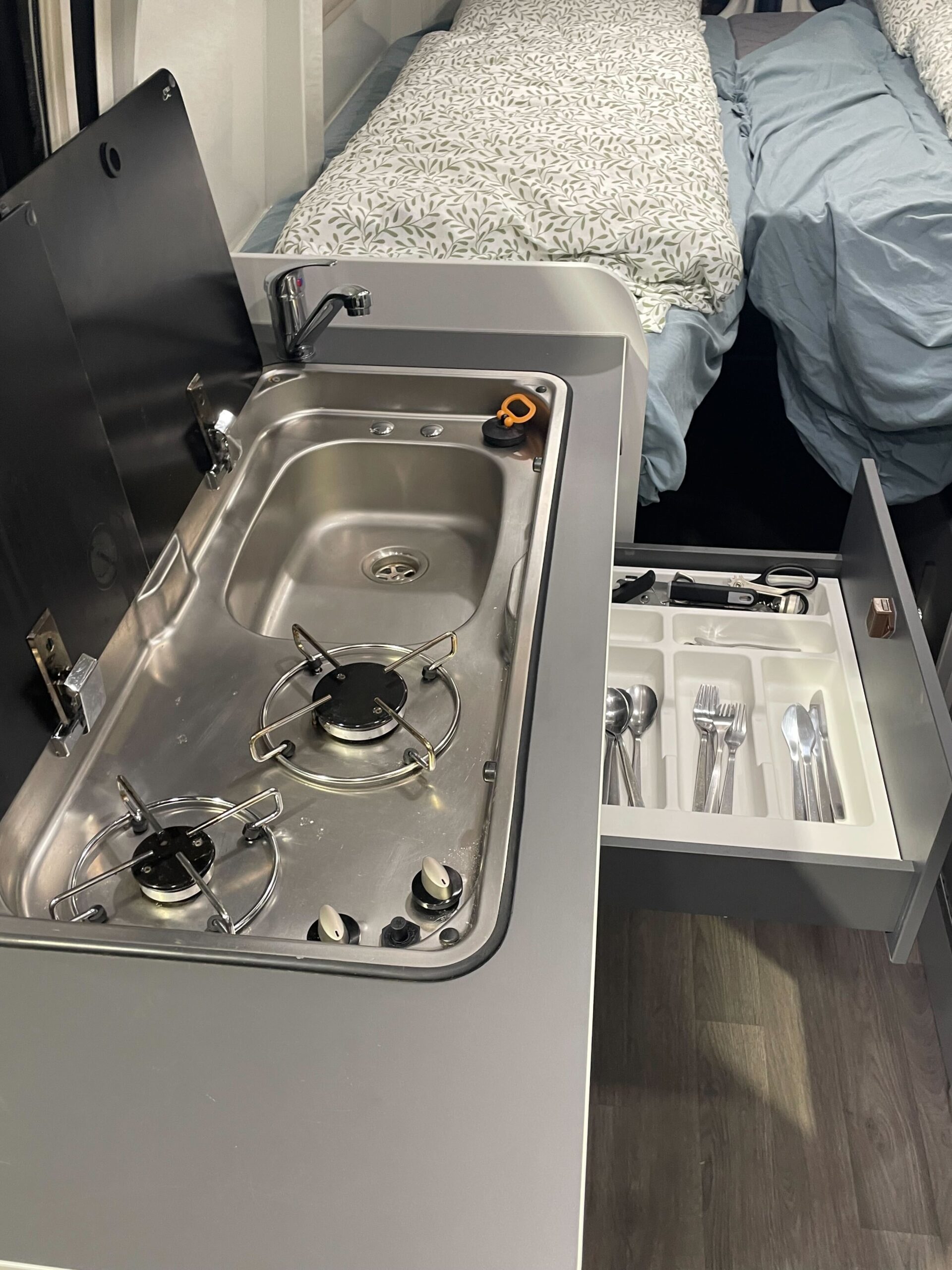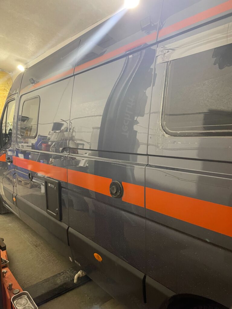 Damages: leak on window left back side, grey water tank sensor, small water leak from fridge + in first drawer, error E512H random (Truma) + W418H