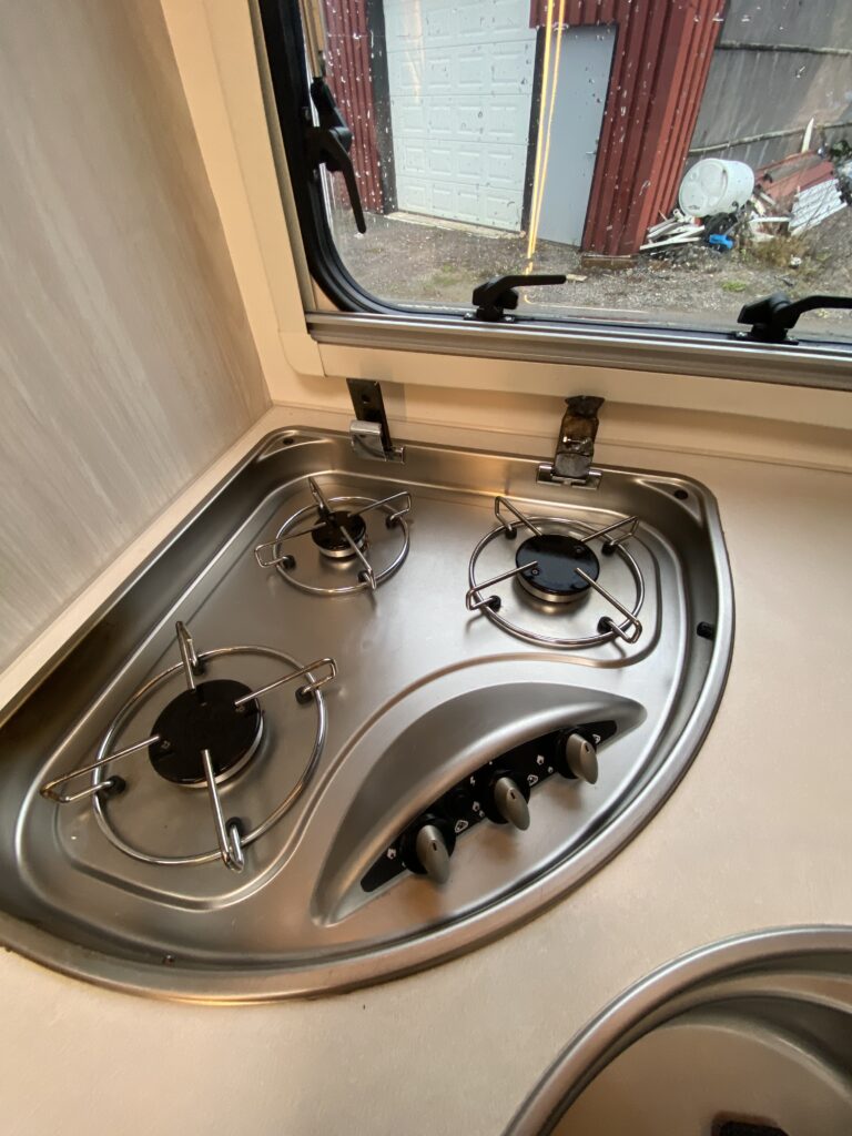 Damages: Stove cover missing, Flat Battery