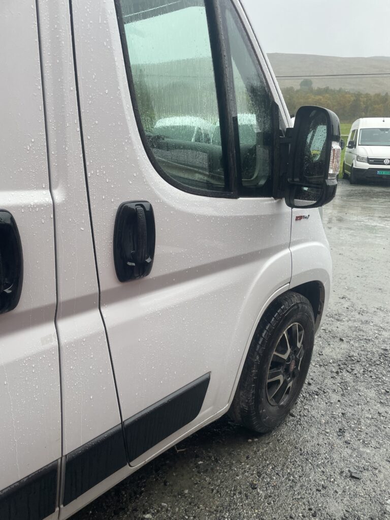 Damages: cabinet door, grey water tank might have a crack on top, possible leakage of coolant, seat heating front only works on level 4